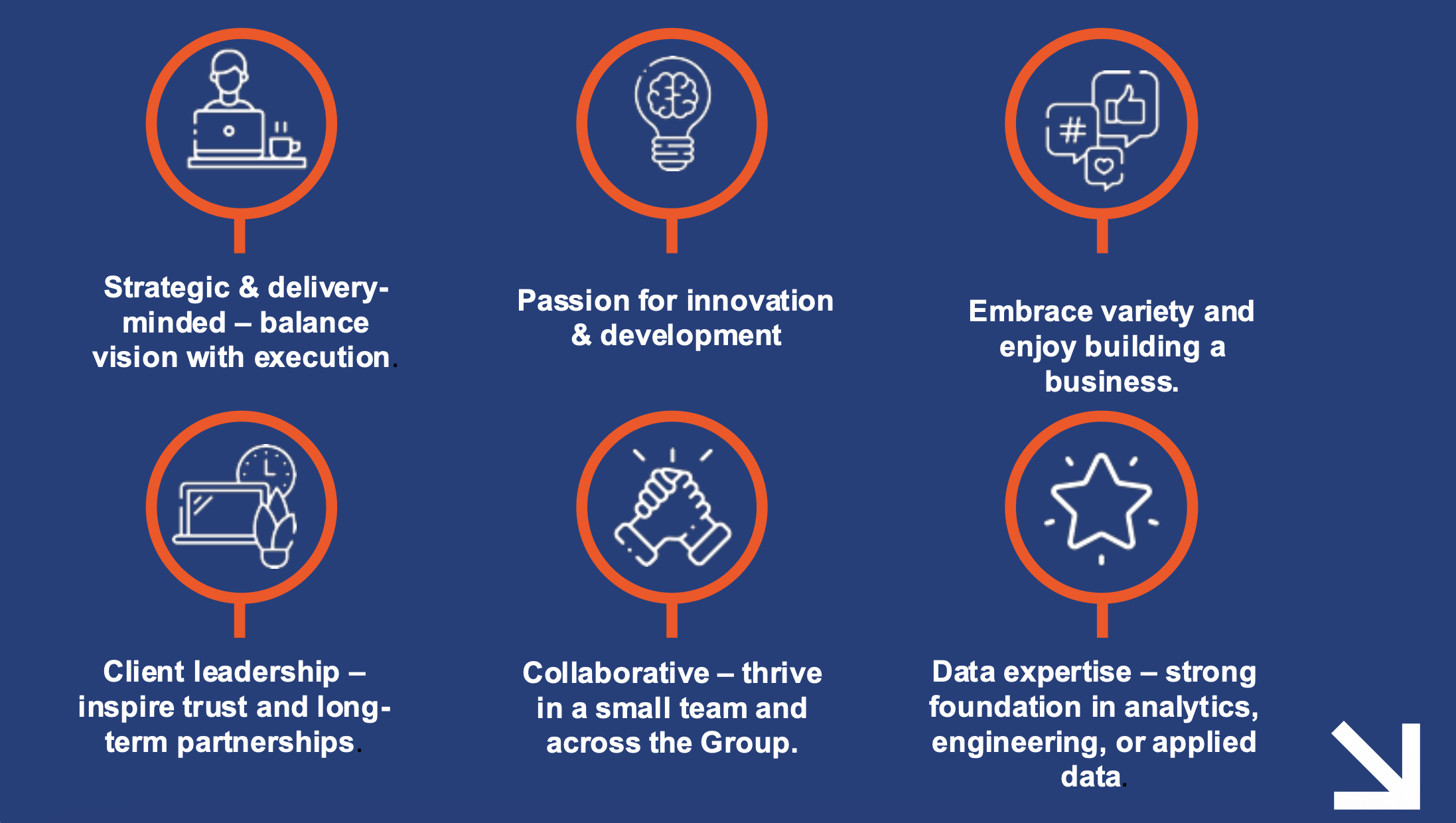 We’re looking for a Director to join our small, agile but ambitious team. You’ll bring curiosity, adaptability and entrepreneurial spirit, alongside the experience to drive commercial growth and deliver outstanding work directly with clients. You’ll be as comfortable setting strategy as you are getting hands-on with delivery, and you’ll enjoy the variety that comes with building something new.